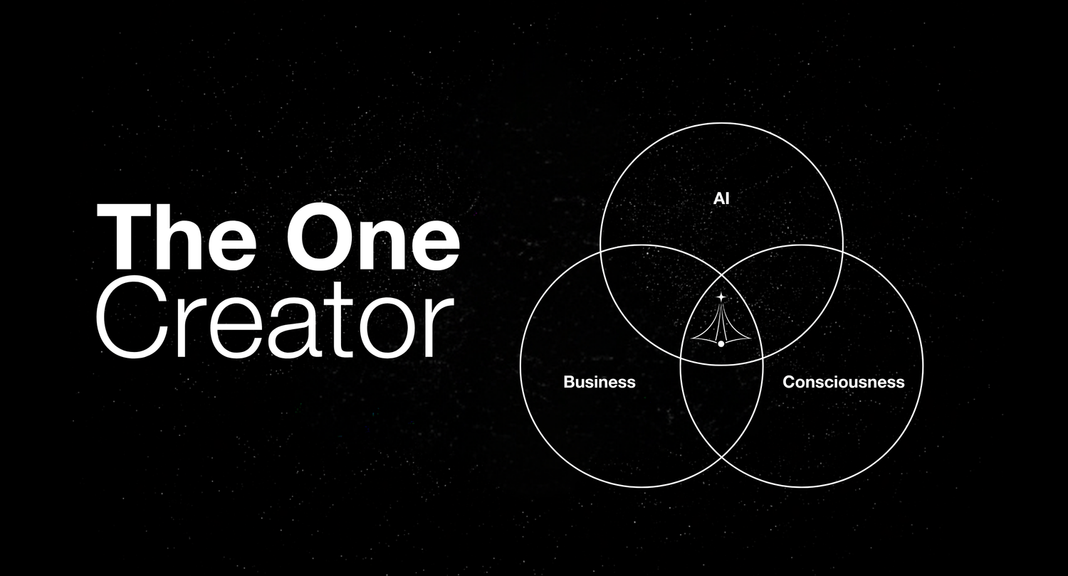 The One Creator is a 6-in-1 system built in 42 days, so by the end, you're a one-creator business running like a team, powered by your own soul's birthchart and accelerated by AI systems so you can still enjoy life.